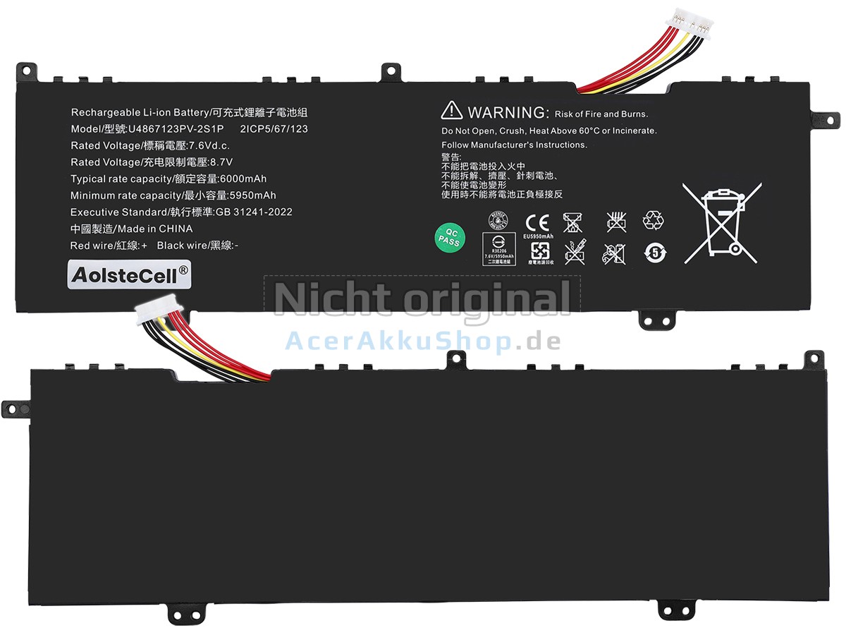 Diese Akku für Acer 4964121-2S1P besteht aus importierten Lithium-Polymer-Batteriezellen der Klasse A+, einer Platine mit mehr als zehn intelligenten Schutzchips und einem hochtemperatur- und verschleißfesten, umweltfreundlichen Kunststoffgehäuse. Alle unsere Acer Ersatzakkus haben eine Reihe internationaler Zertifizierungen wie GS, CE, UL, RoHS, ISO9001 usw. bestanden und ihre Leistung ist mit der von originalen 4964121-2S1P Laptop-Akkus vergleichbar.