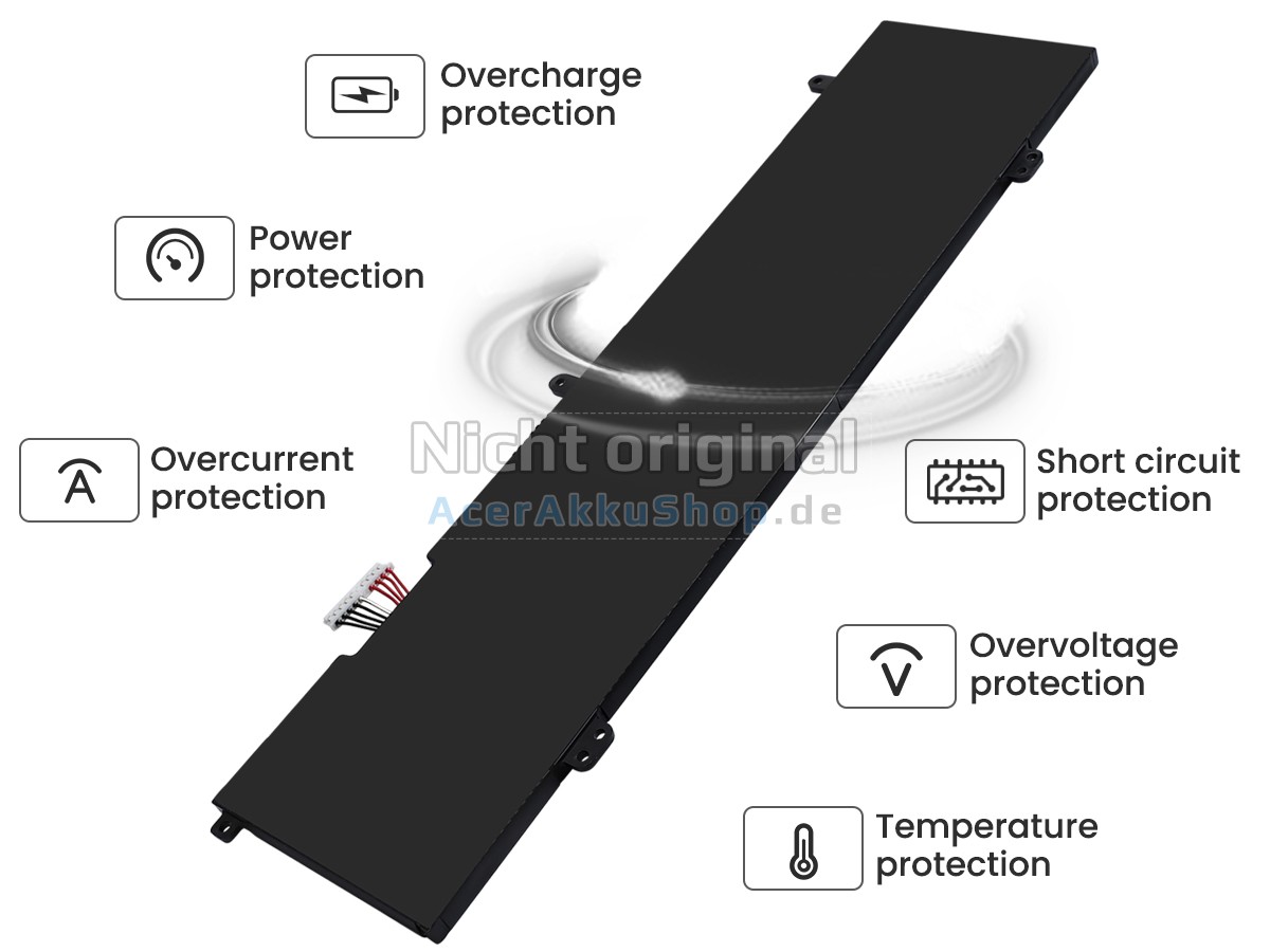 Diese Akku für Acer N23J4 besteht aus importierten Lithium-Polymer-Batteriezellen der Klasse A+, einer Platine mit mehr als zehn intelligenten Schutzchips und einem hochtemperatur- und verschleißfesten, umweltfreundlichen Kunststoffgehäuse. Alle unsere Acer Ersatzakkus haben eine Reihe internationaler Zertifizierungen wie GS, CE, UL, RoHS, ISO9001 usw. bestanden und ihre Leistung ist mit der von originalen N23J4 Laptop-Akkus vergleichbar.