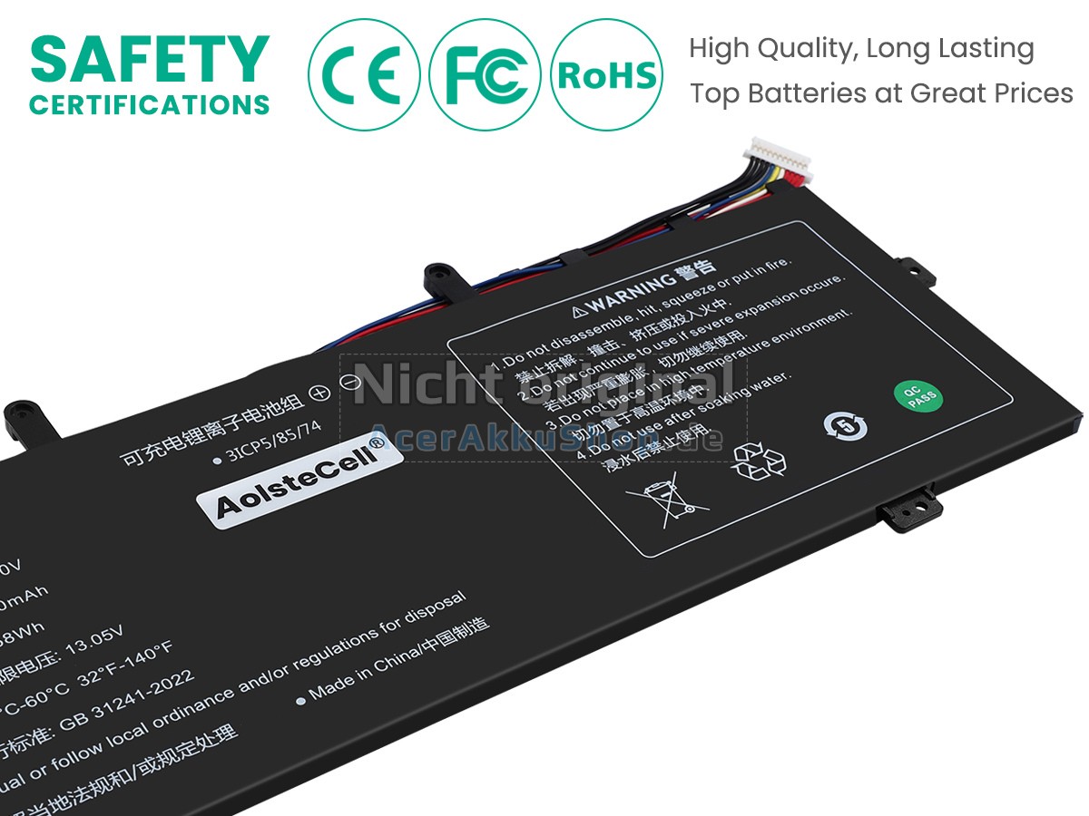 Diese Akku für Gateway 478574-3S1P besteht aus importierten Lithium-Polymer-Batteriezellen der Klasse A+, einer Platine mit mehr als zehn intelligenten Schutzchips und einem hochtemperatur- und verschleißfesten, umweltfreundlichen Kunststoffgehäuse. Alle unsere Gateway Ersatzakkus haben eine Reihe internationaler Zertifizierungen wie GS, CE, UL, RoHS, ISO9001 usw. bestanden und ihre Leistung ist mit der von originalen 478574-3S1P Laptop-Akkus vergleichbar.